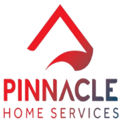 Pinnacle Home Services" text with a stylized red and gradient house roof graphic elegantly placed above the words.